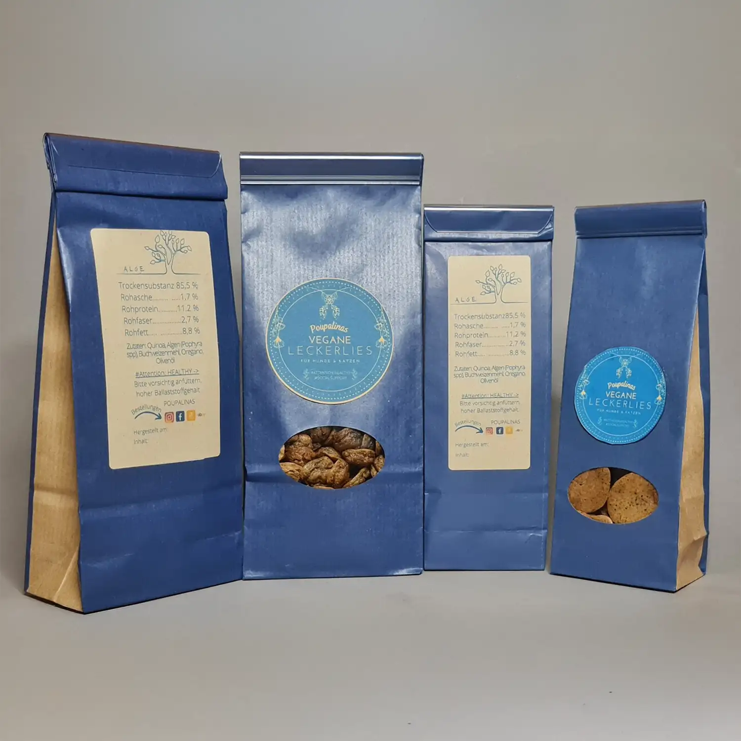 Die ultimativen veganen Leckerlis für Ihre vierbeinigen Lieblinge. Unsere einzigartigen Snacks auf Quinoa-Basis bieten nicht nur einen köstlichen Geschmack, sondern auch einen hohen Proteingehalt für optimale Ernährung. Glutenfrei und zuckerfrei hergestellt, sind diese Leckerbissen die perfekte Wahl für gesundheitsbewusste Hunde- und Katzenbesitzer. Verwöhnen Sie Ihr Haustier mit Poupalinas – dem Superfood, das Geschmack und Gesundheit in jedem Bissen vereint.